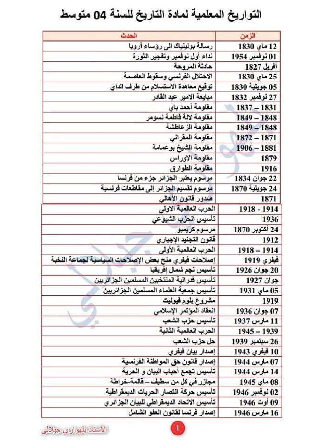 أكمل القراءة »التواريخ المعلمية لمادة التاريخ 4 متوسط