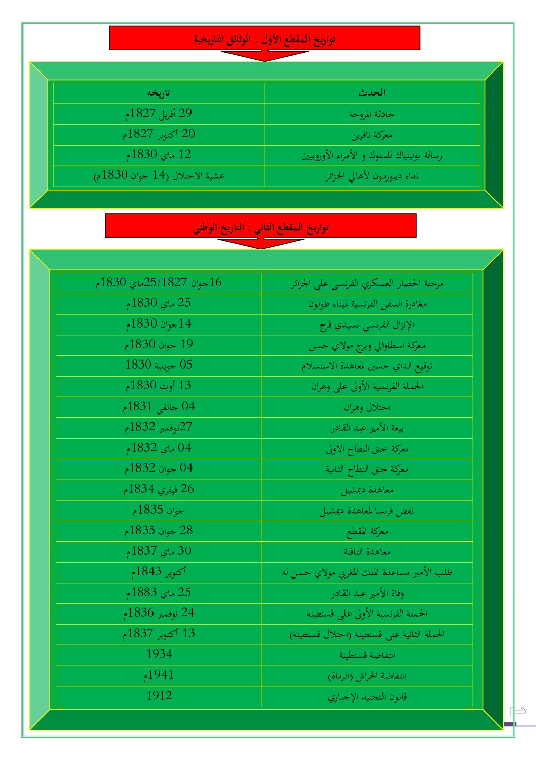 التواريخ المعلمية لمادة التاريخ 4 متوسط مادة التاريخ والجغرافيا للسنة الرابعة 4 متوسط دروس مفصلة، فروض واختبارات، تمارين محلولة: استراتيجية تنفيذ الثورة داخليا و خارجيا في مادة التاريخ 4 متوسط يمكن تصفح الإختبار مباشرة عبر موقع الدراسة الجزائري أو تحميله مباشرة بصيغة PDF بالضغط أعلاه على: .: تحميل :. التاريخ والجغرافيا السنة الرابعة متوسط