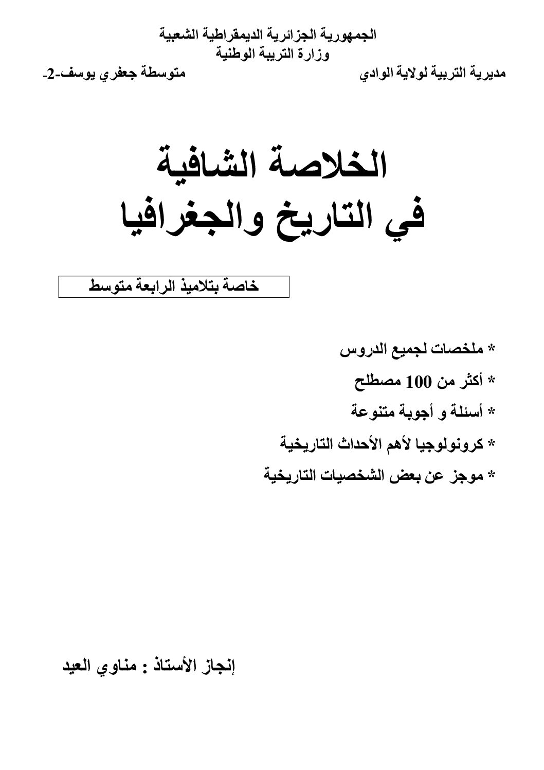 أكمل القراءة »الانيس في الاجتماعيات دروس مصطلحات تواريخ معلمية و شخصيات للأستاذ عبد الوهاب فتحي 4 متوسط