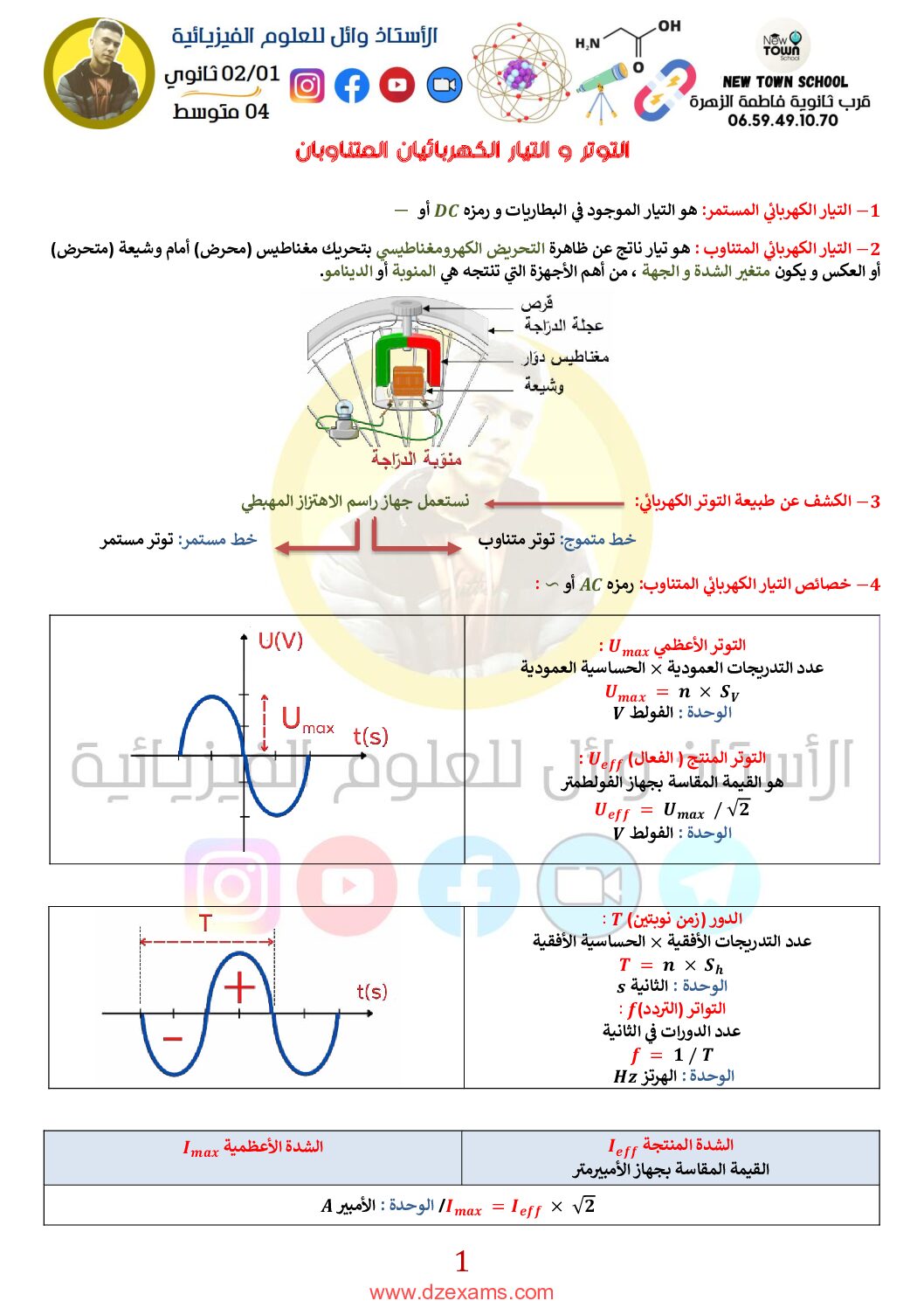 أكمل القراءة »ملخص درس التوتر والتيار الكهربائي للأستاذ وائل 4 متوسط