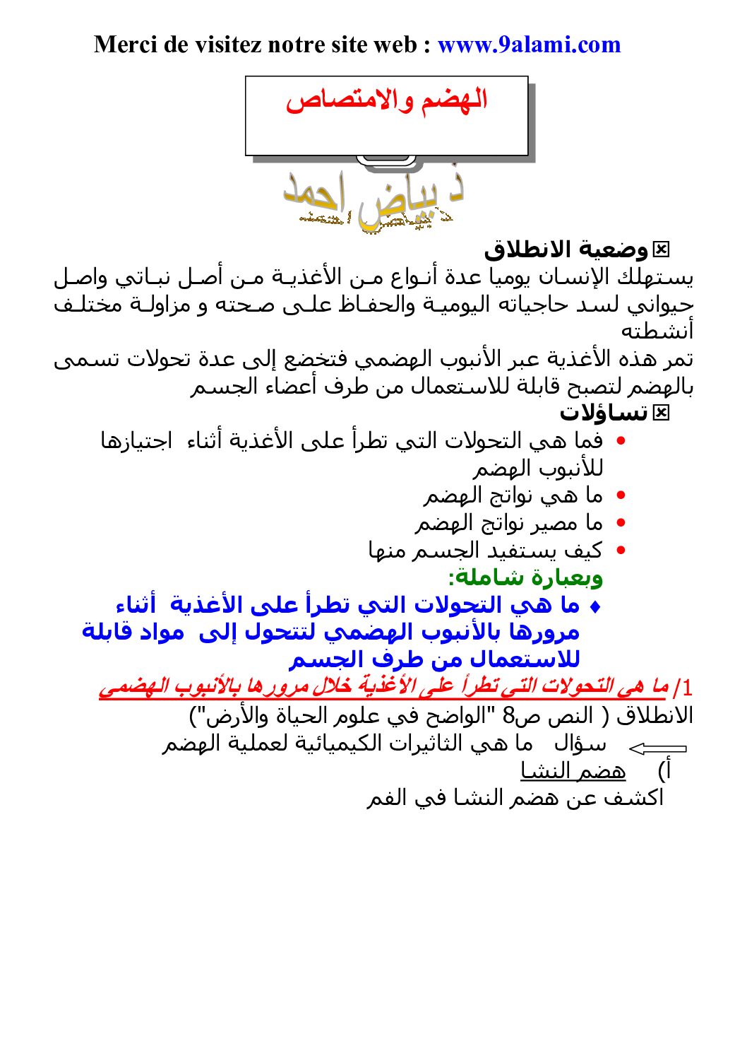 أكمل القراءة »المستوى الثالث درس الهضم والإمتصاص علوم طبيعية 4 متوسط