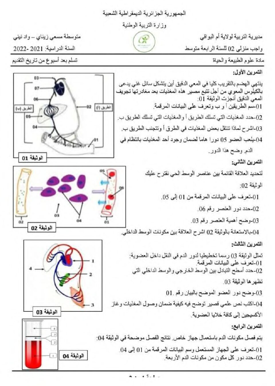 أكمل القراءة »واجب منزلي في العلوم الطبيعية السنة الرابعة متوسط رقم 1 مع التصحيح