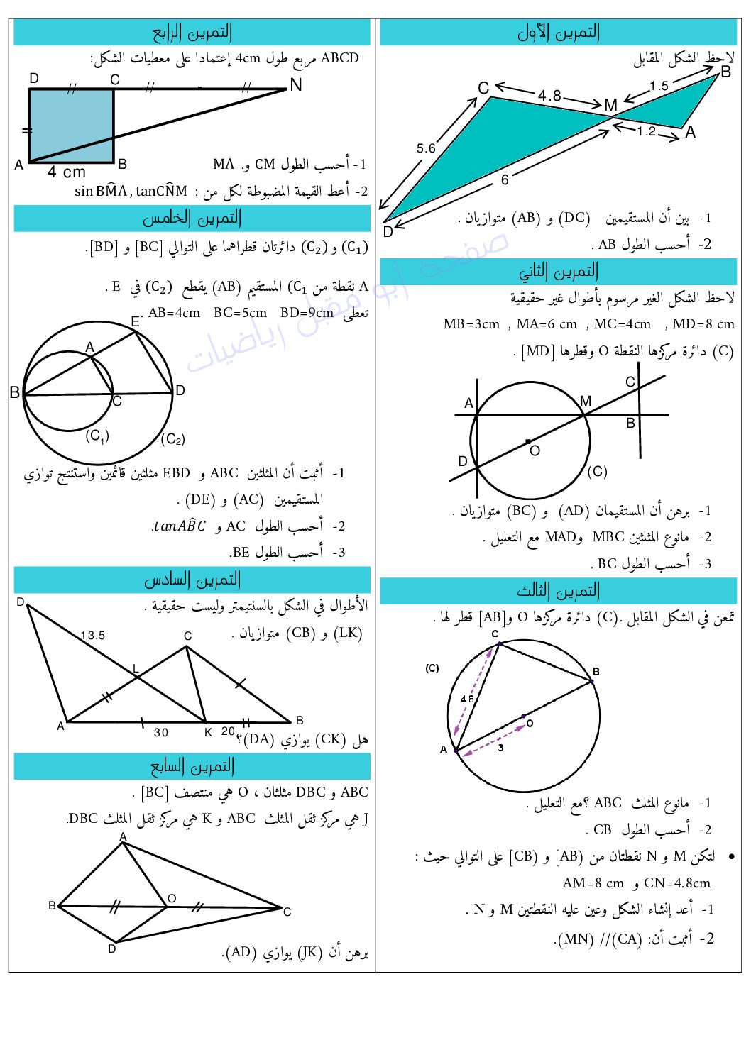 أكمل القراءة »سلسلة تمارين خاصية طالس وخاصية طالس العكسية 4 متوسط