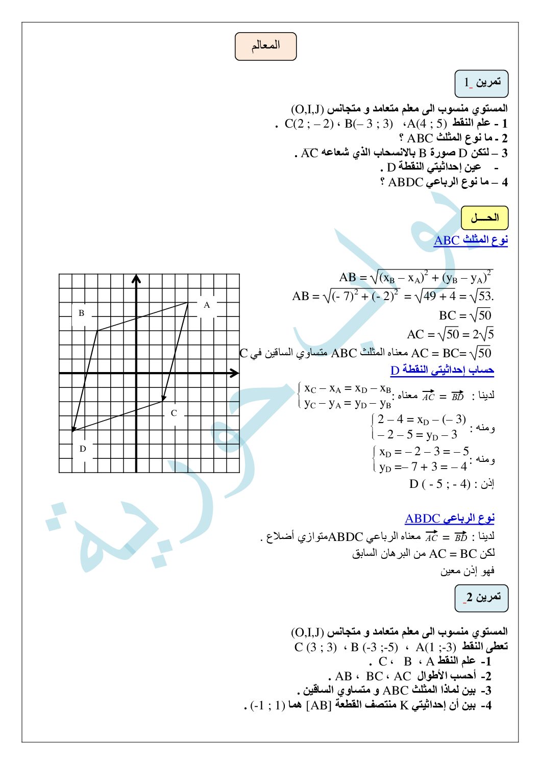 أكمل القراءة »سلسلة تمارين المعالم في مادة الرياضيات 4 متوسط