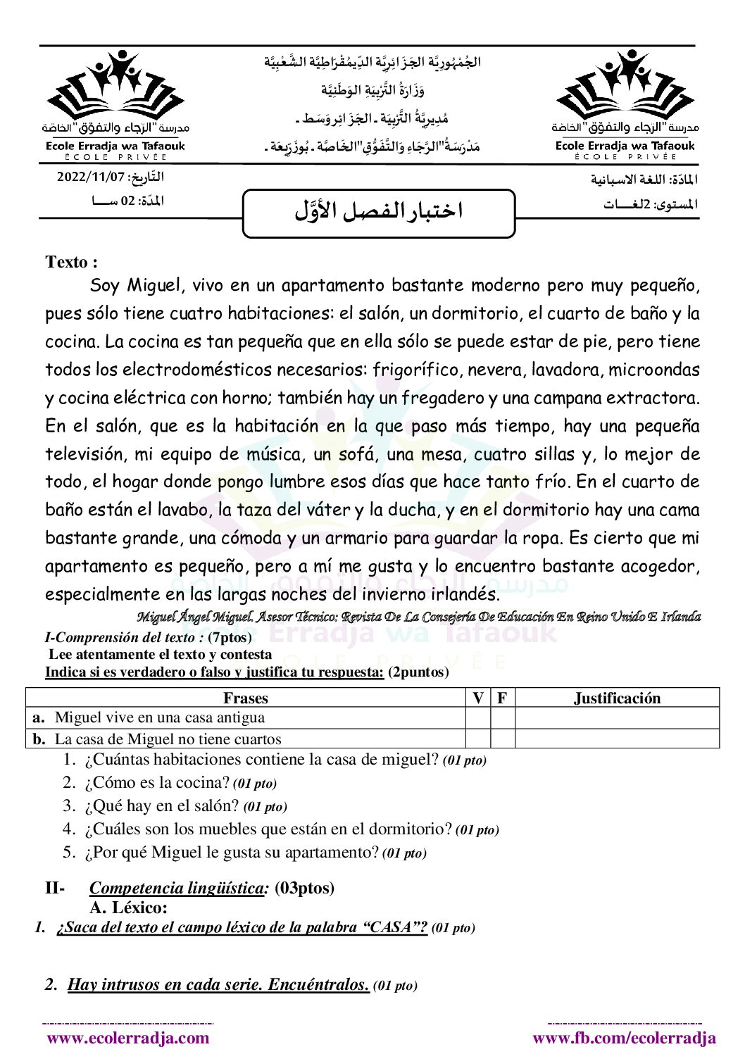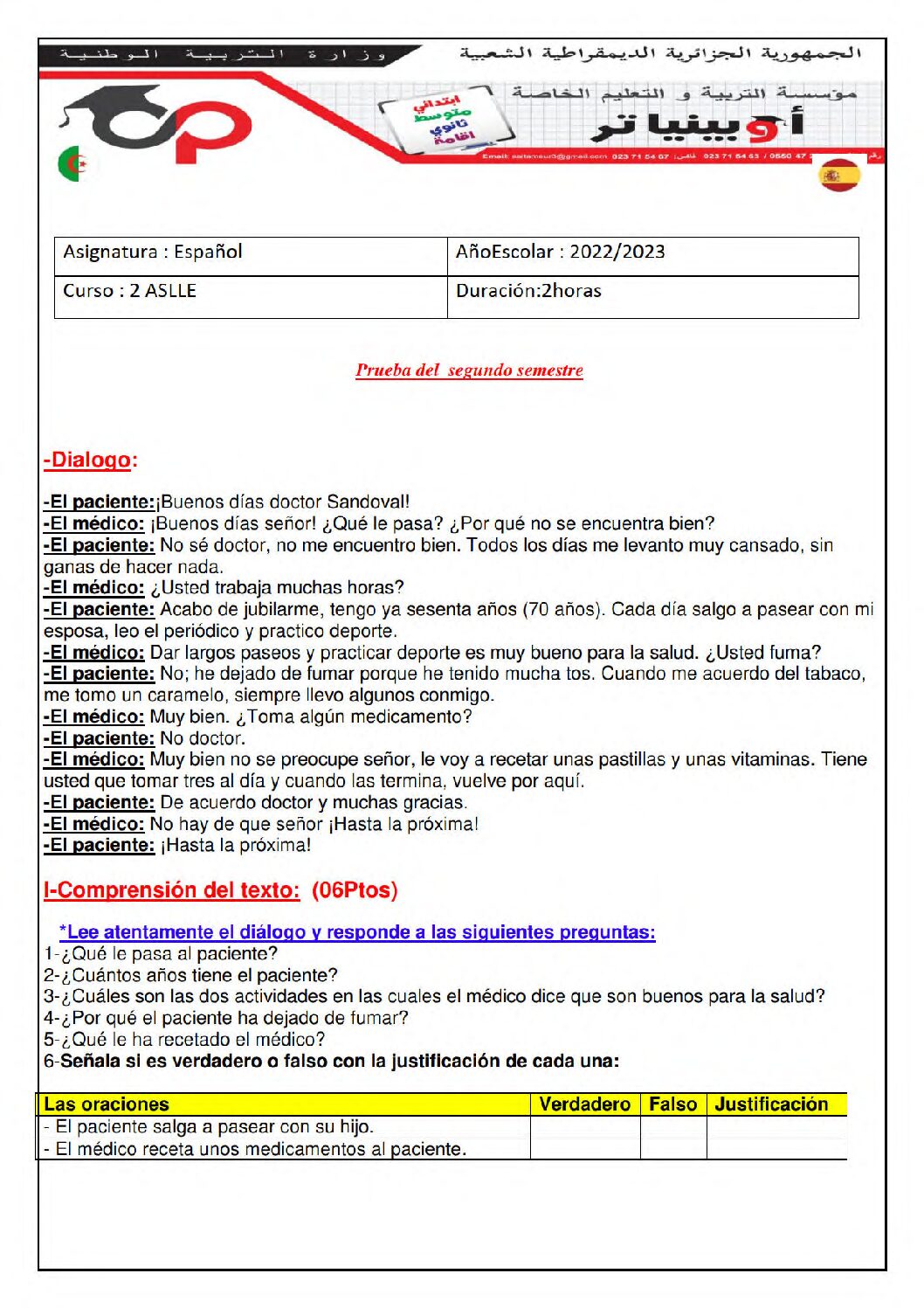 أكمل القراءة »اختبار في اللغة الإسبانية الفصل الأول السنة الثانية ثانوي رقم 28 مع التصحيح