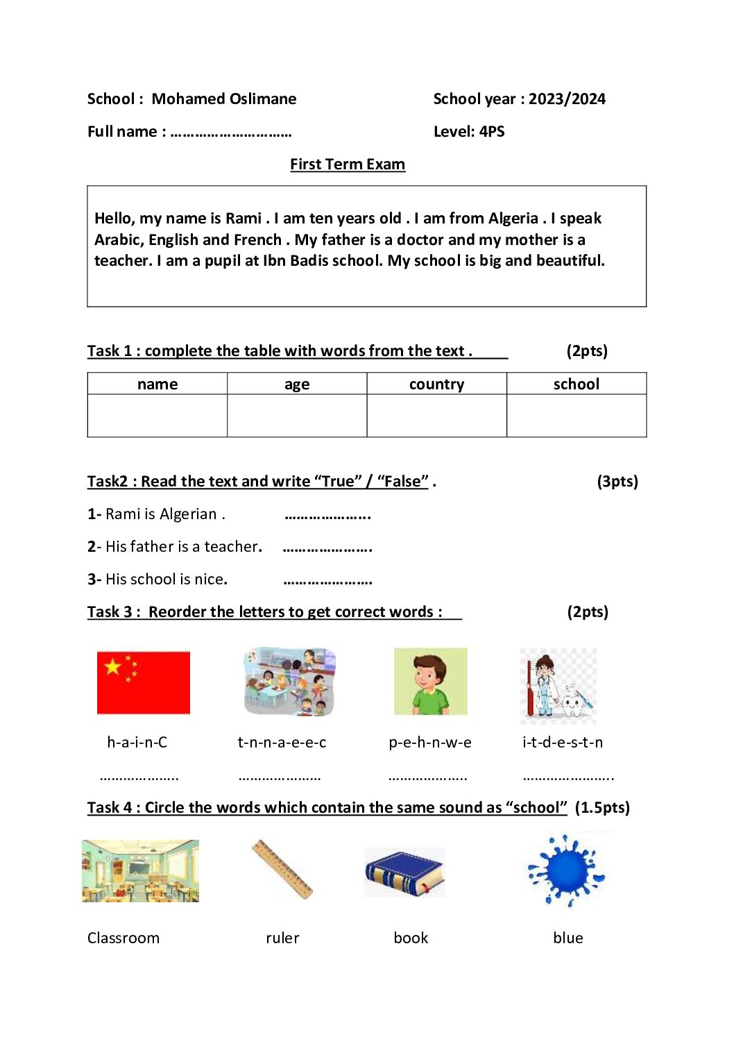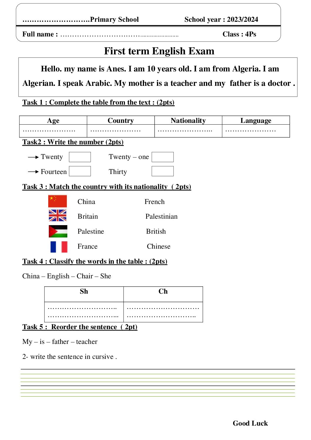 أكمل القراءة »إختبار الفصل الثاني في اللغة الإنجليزية السنة الرابعة ابتدائي رقم 13 مع التصحيح