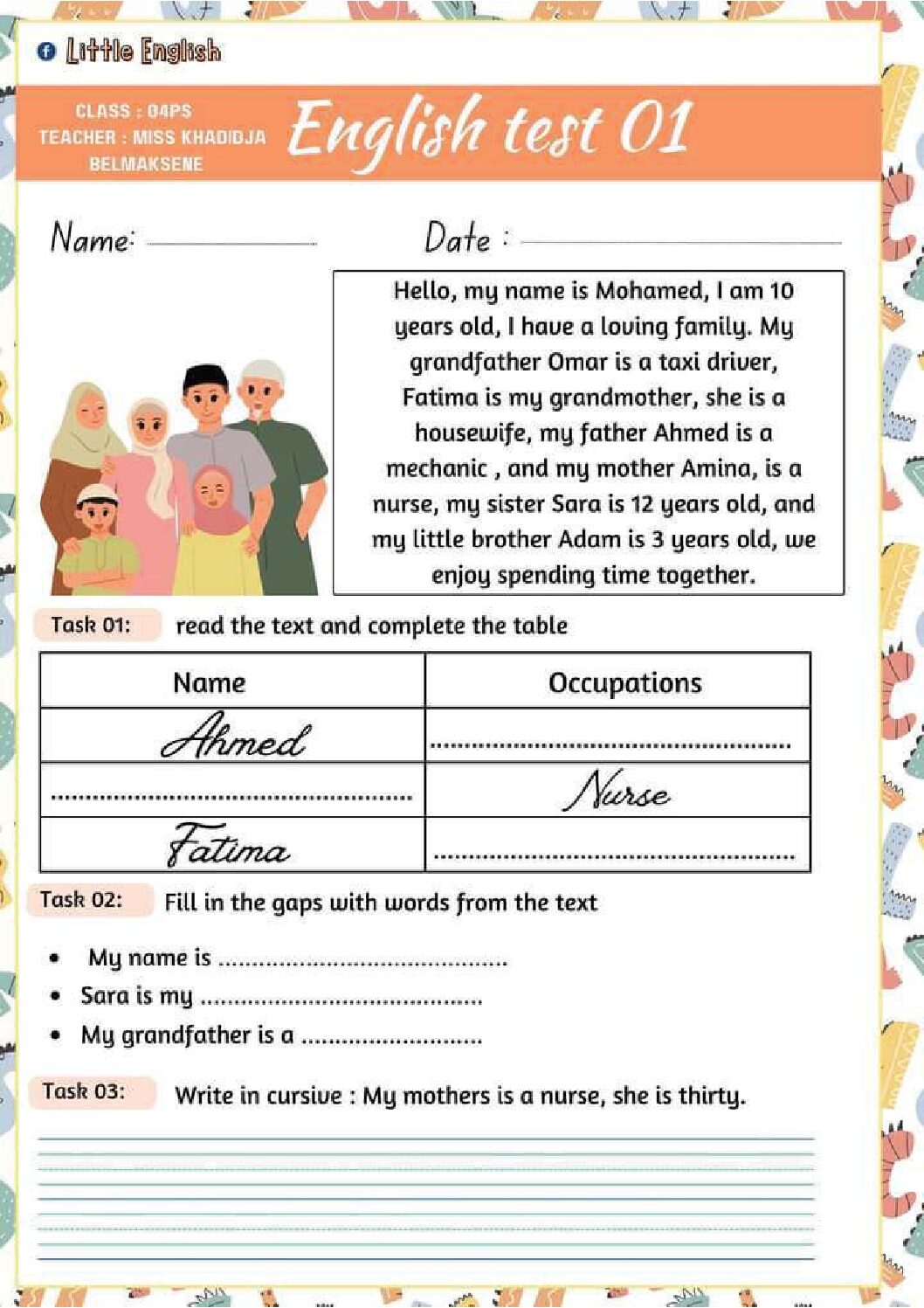 أكمل القراءة »إختبار الفصل الثاني في اللغة الإنجليزية السنة الرابعة ابتدائي رقم 14 مع التصحيح