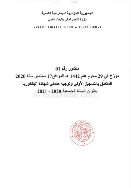 قبل الشروع في عملية التسجيل الأولي، يجب أن تطّلع جيّدا على المنشور الوزاري رقم 01 الذي يحدد المعدلات الدنيا.