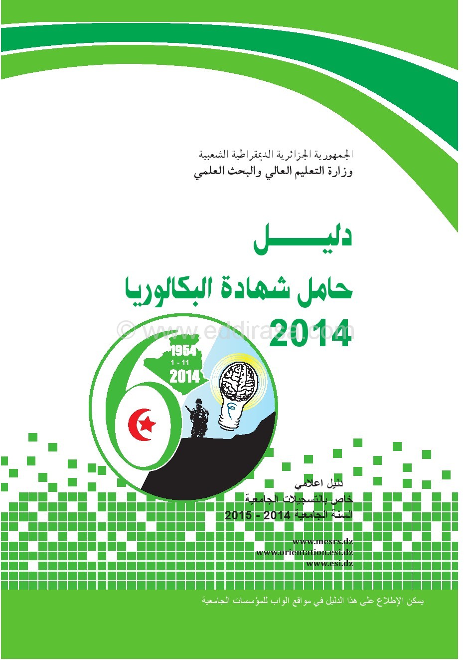 ستجد في الصفحات من 7 إلى 10 من دليل حامل شهادة البكالوريا الجديد، قائمة كل أنواع التكوين العالي في الجزائر. وتجد فيها رقم الصفحة الخاصة بكل الفروع في المنشور الوزاري رقم 01 المؤرّخ في 05 شعبان 1435هـ الموافق 03 جوان 2014 ، المتعلق بالتسجيل الأوّلي وتوجيه حاملي شهادة البكالوريا للسنة الجامعية 2014-2015 ( انظر النسخة الورقية باللغة الوطنية التي استلمتها رفقة كشف نقاط البكالوريا).