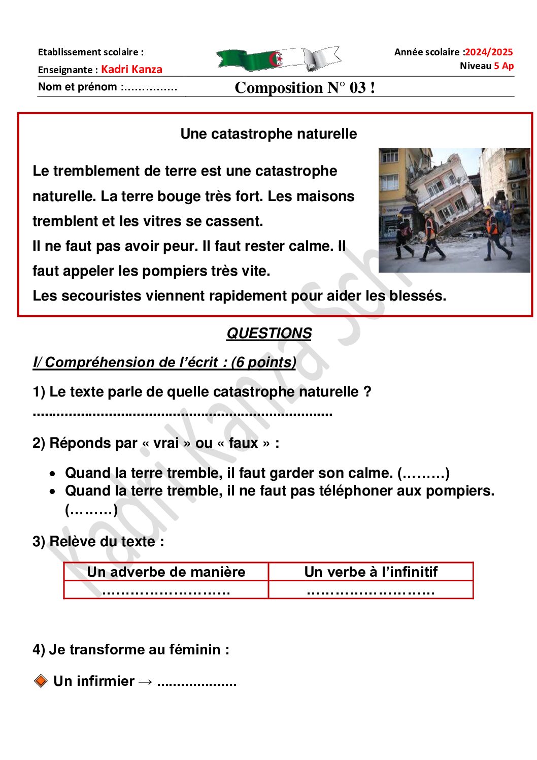 أكمل القراءة »إختبار الفصل الثالث في اللغة الفرنسية السنة الخامسة ابتدائي رقم 63 مع التصحيح
