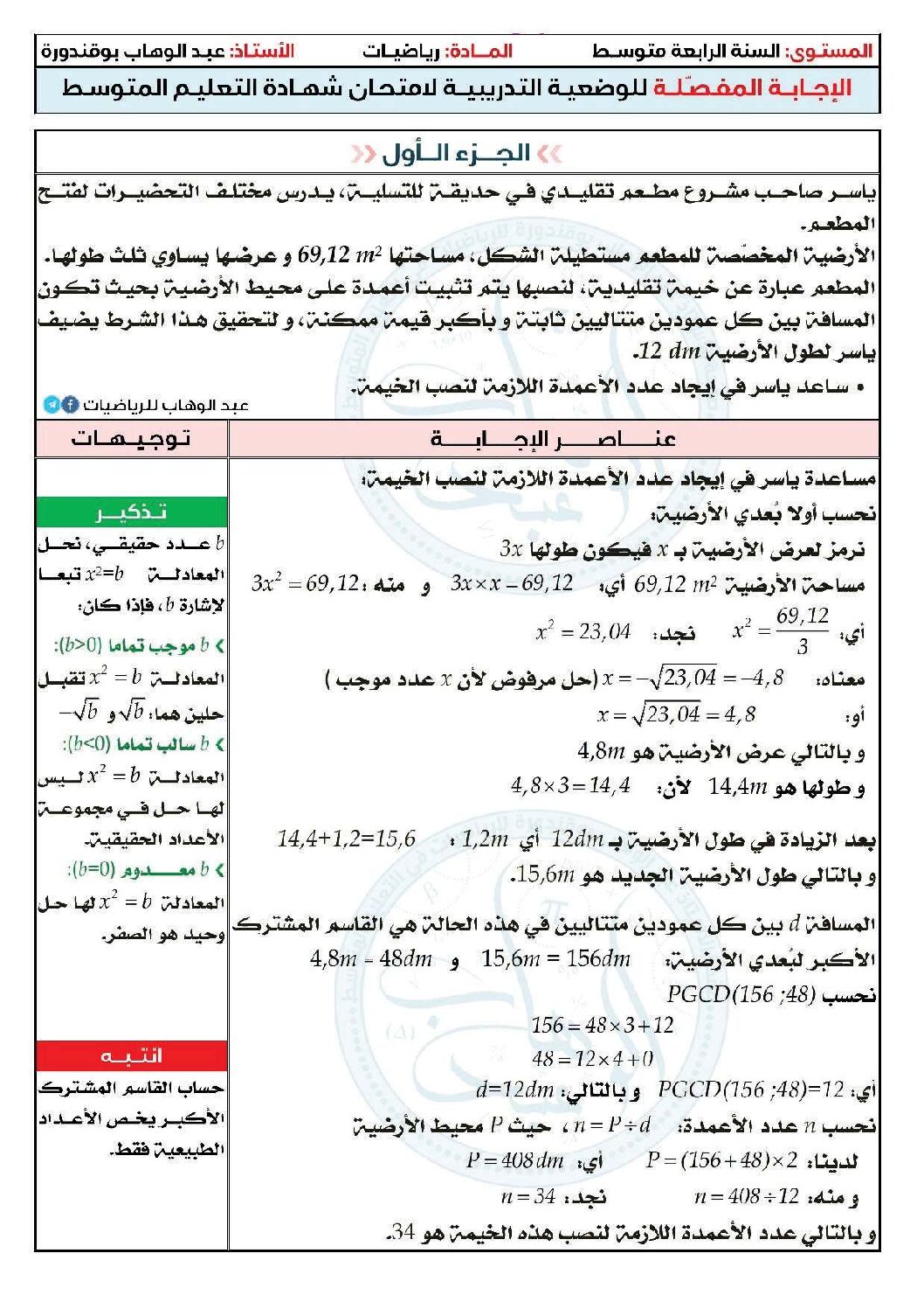 أكمل القراءة »وضعية إدماجية مرفقة بالحل حول النشر و التحليل النسب المثلثية 4 متوسط