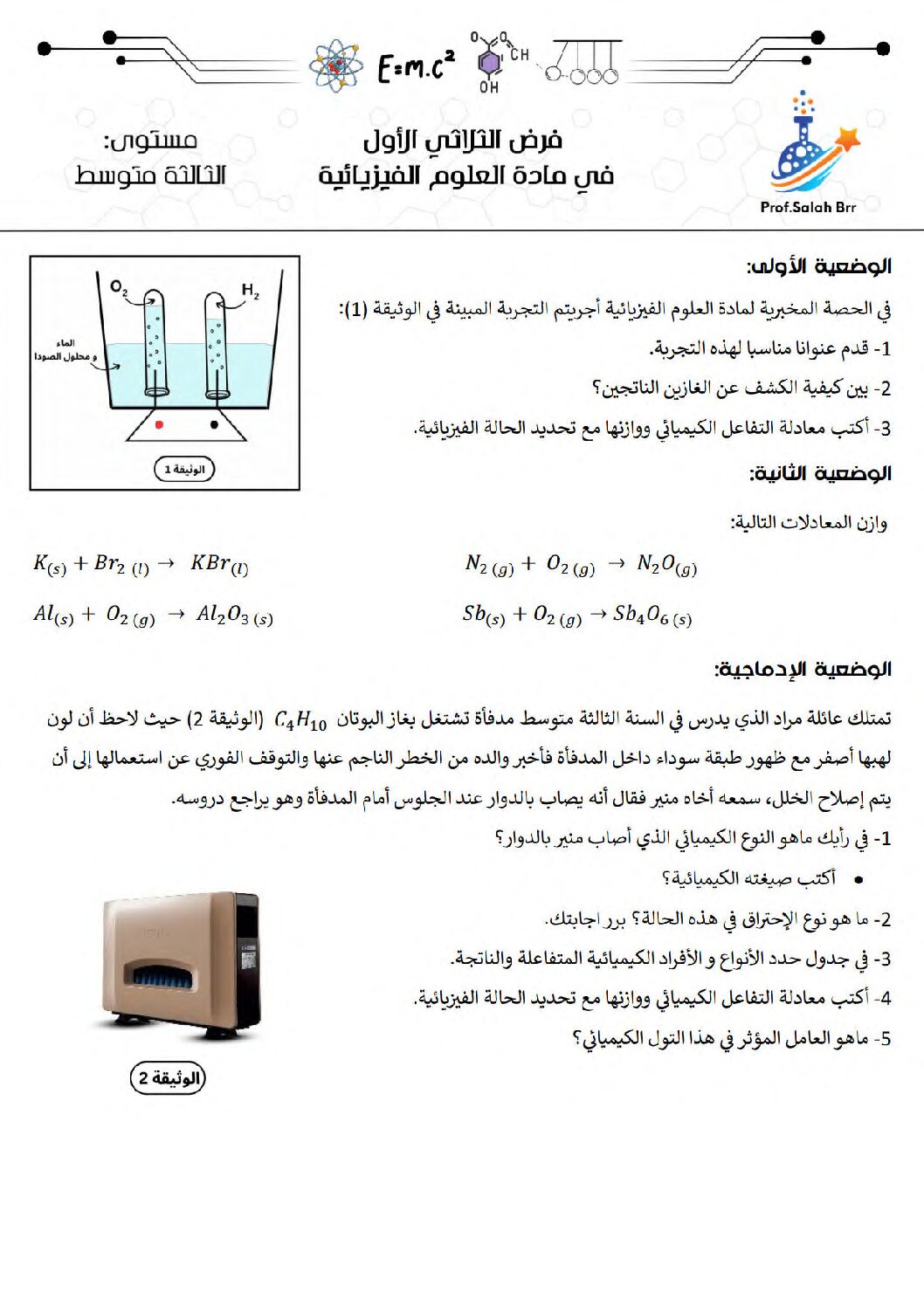فرض في العلوم الفيزيائية الفصل الأول السنة الثالثة متوسط رقم 93