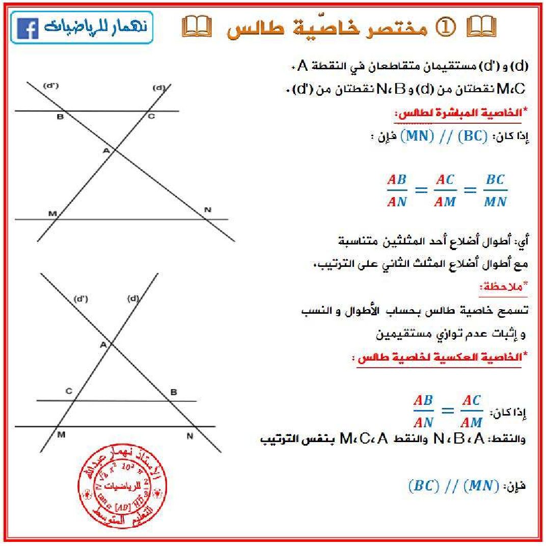 مختصر درس خاصية طالس في مادة الرياضيات 4 متوسط