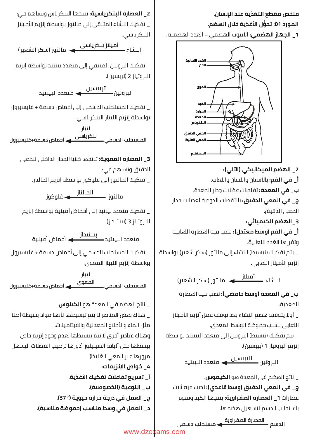 ملخص مقطع التغذية عند الانسان للاستاذ العربي محمد الامين 4 متوسط