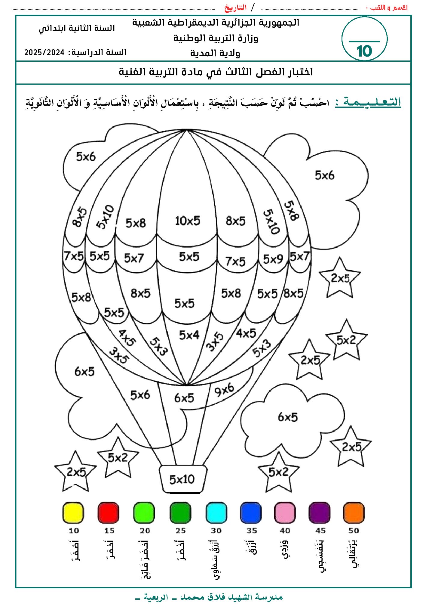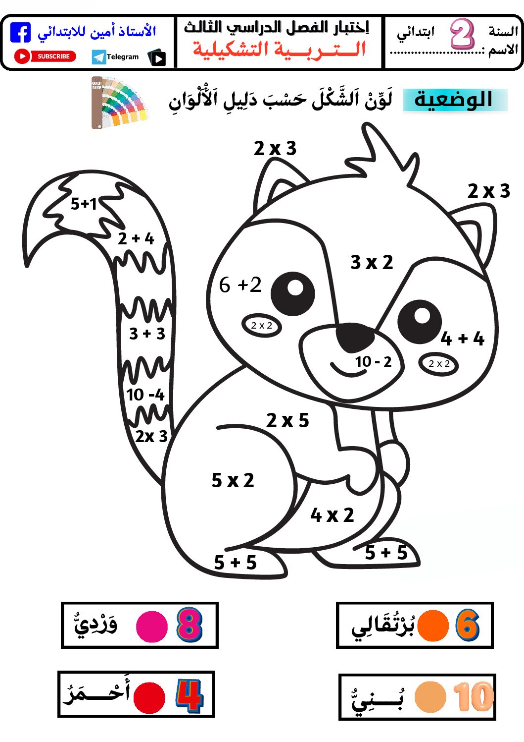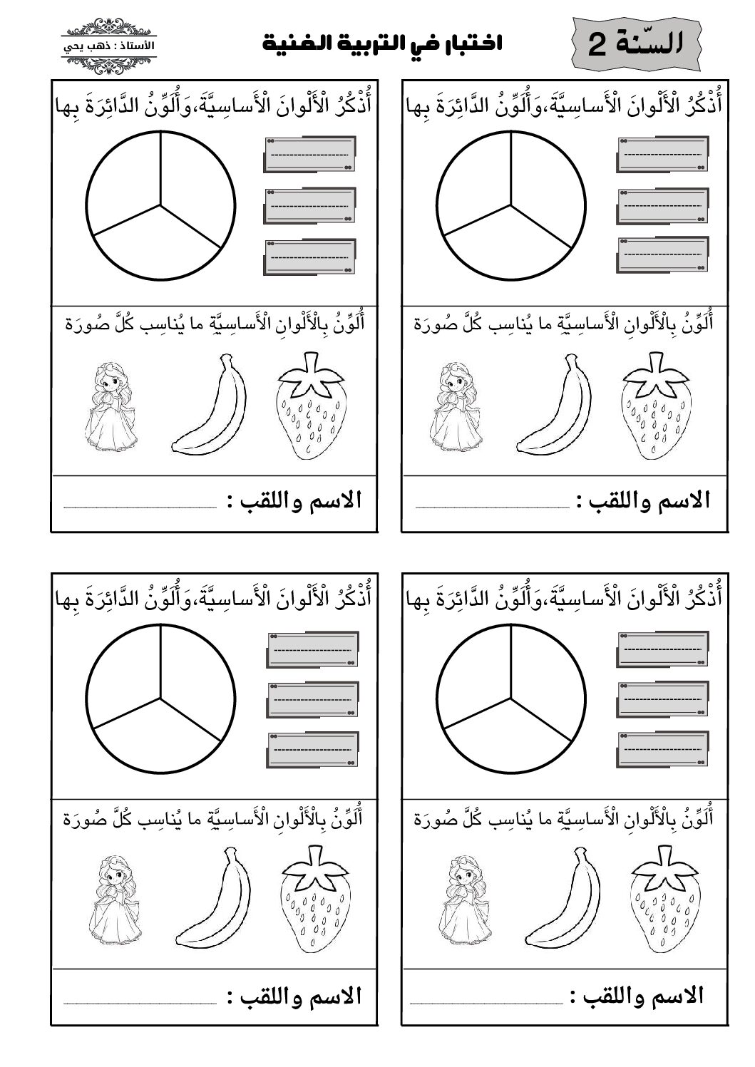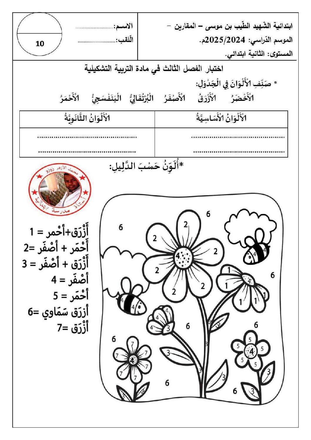 إختبار في التربية الفنية السنة الثانية ابتدائي رقم 69 مع التصحيح