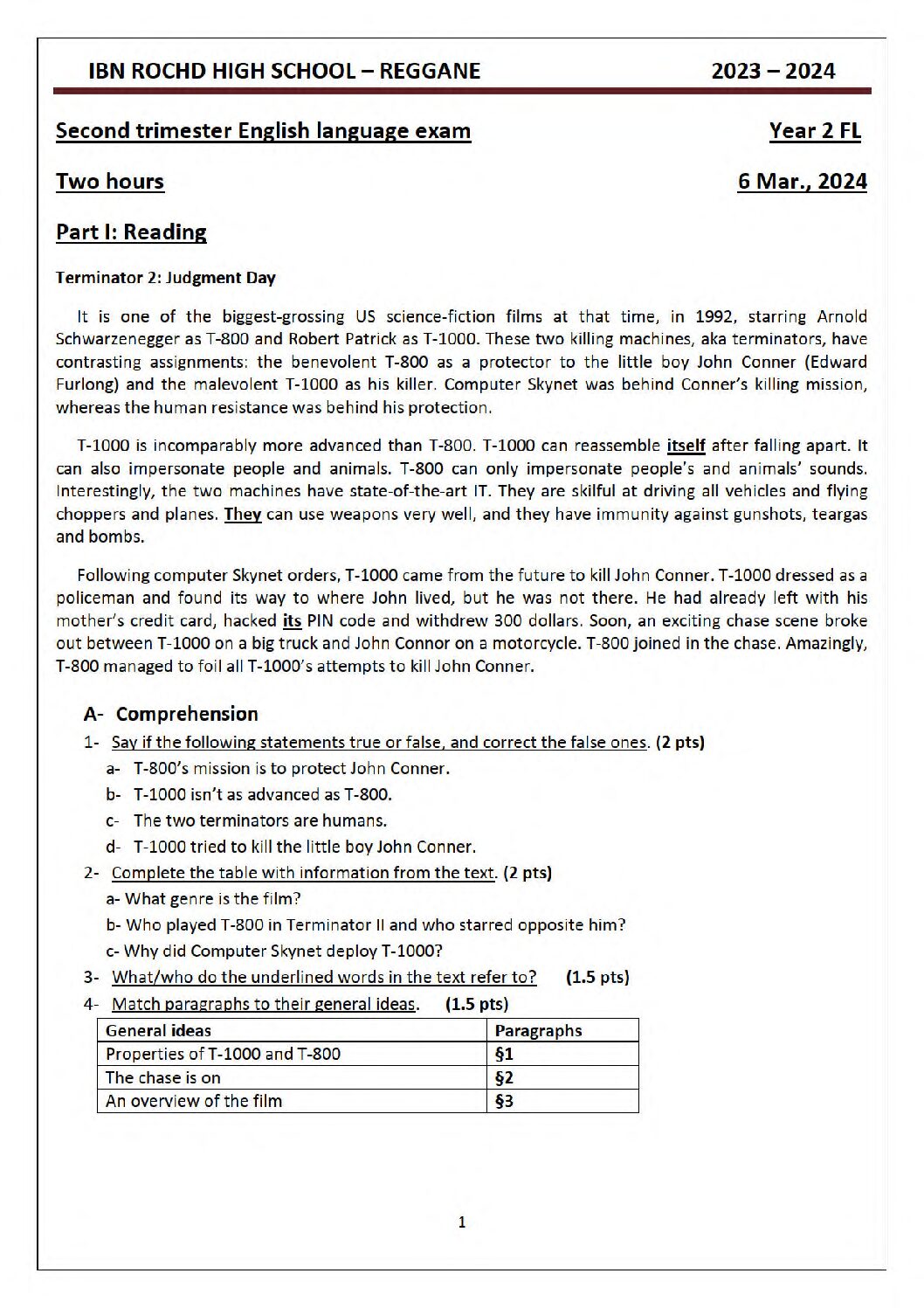 أكمل القراءة »اختبار في اللغة الإنجليزية الفصل الثاني السنة الثانية ثانوي أدبي رقم 28 مع التصحيح