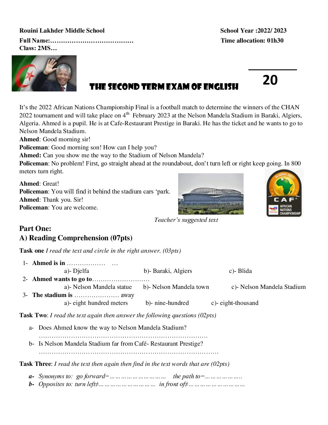 أكمل القراءة »اختبار في اللغة الإنجليزية الفصل الثاني السنة الثانية متوسط رقم 48 مع التصحيح