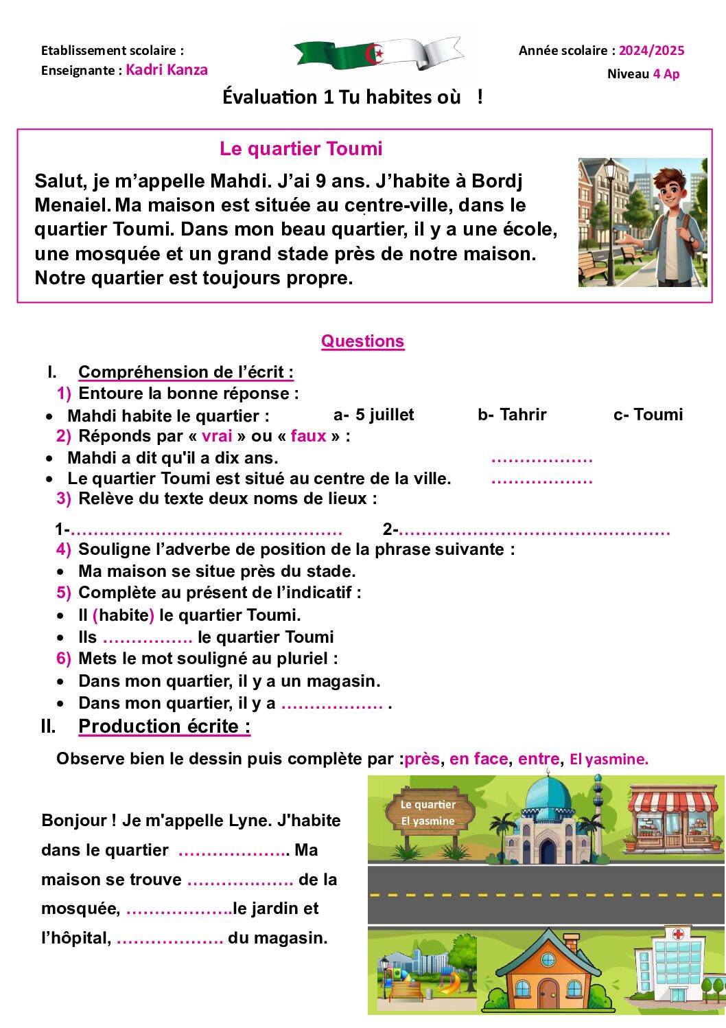 مادة اللغة الفرنسية للسنة الرابعة ابتدائي : نموذج لإمتحان في الفصل الأول رقم 86- في مادة اللغة الفرنسية مستوى السنة الرابعة ابتدائي الجيل الثاني ، السنة الدراسية: 2025/2026 مع التصحيح يمكن تصفح الإختبار مباشرة عبر موقع الدراسة الجزائري أو تحميله مباشرة بصيغة PDF بالضغط أعلاه على: .: تحميل :. اللغة الفرنسية السنة الرابعة ابتدائي
