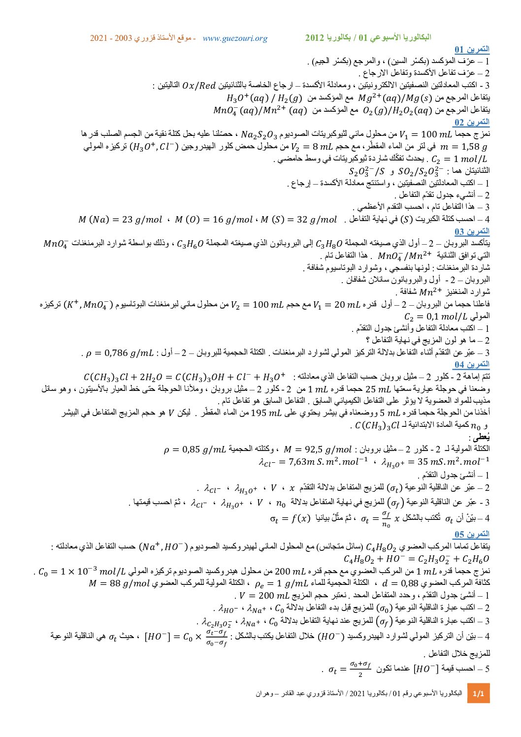 أكمل القراءة »سلسلة تمارين وحدة المتابعة الزمنية لتحول كيميائي للأستاذ جيلاني يحيى 3 ثانوي
