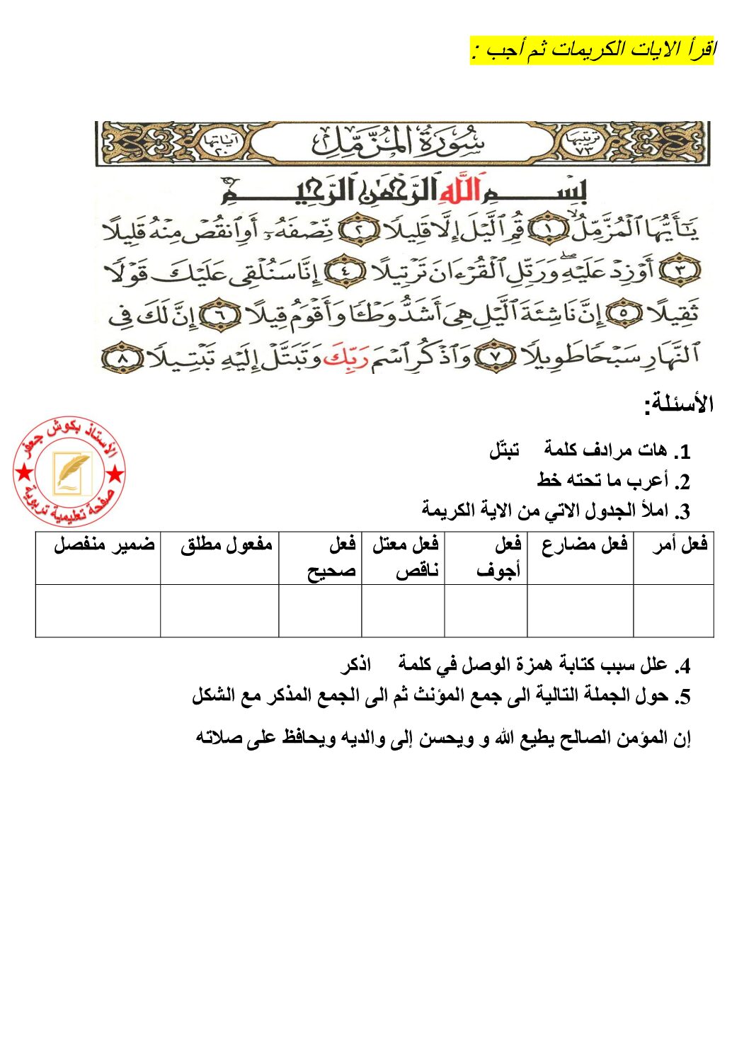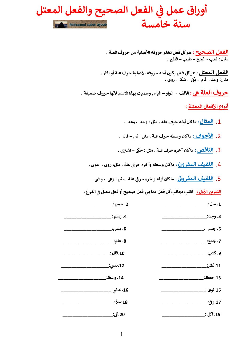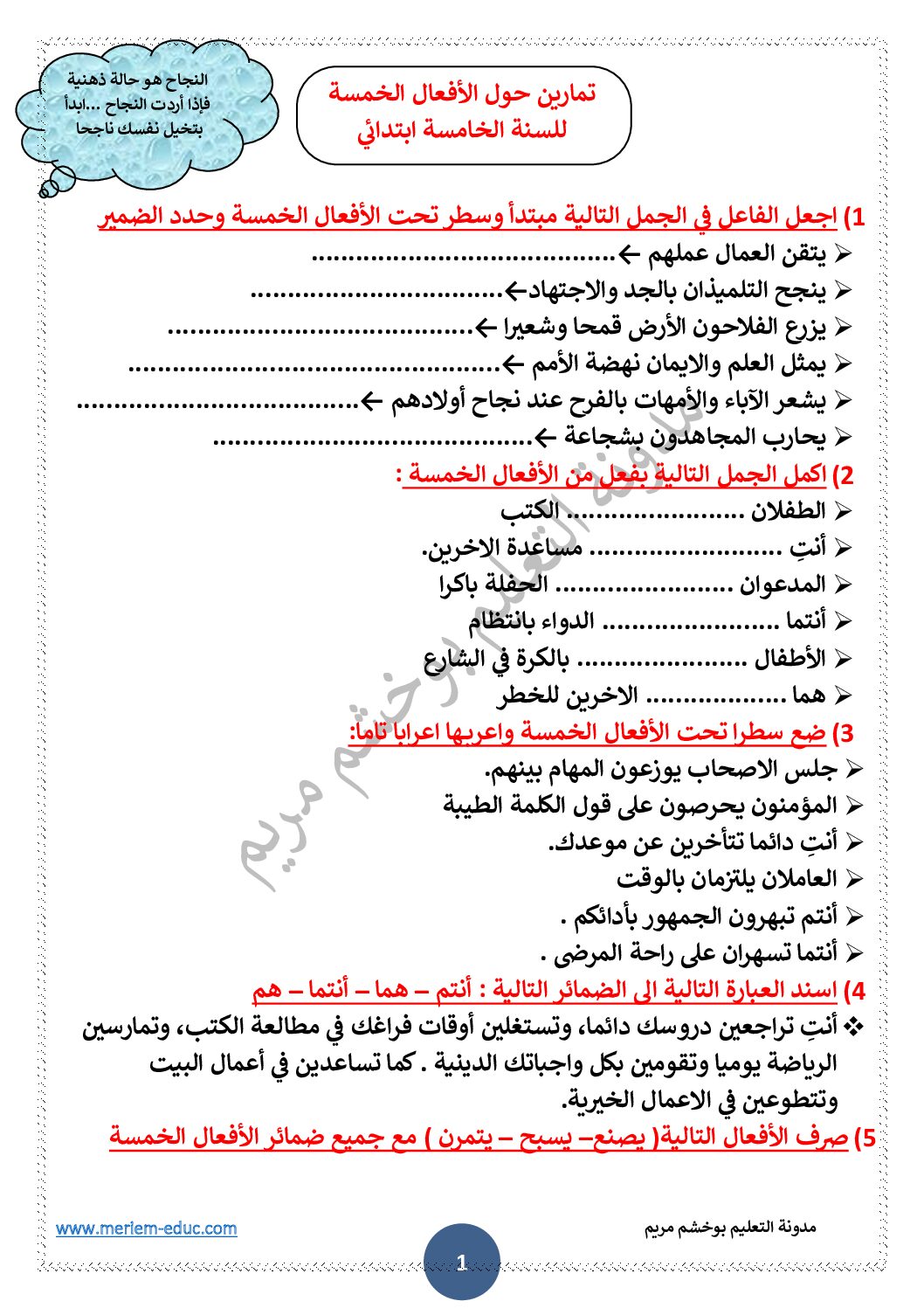 أكمل القراءة »تمارين حول الأفعال الخمسة مع الحل للأستاذة مريم بوخشم 5 ابتدائي