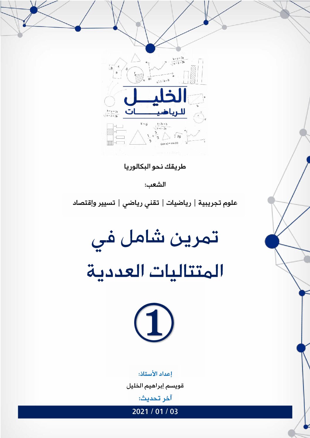 تمرين متتاليات شامل مع الحل المفصل لجميع الشعب العلمية 3 ثانوي