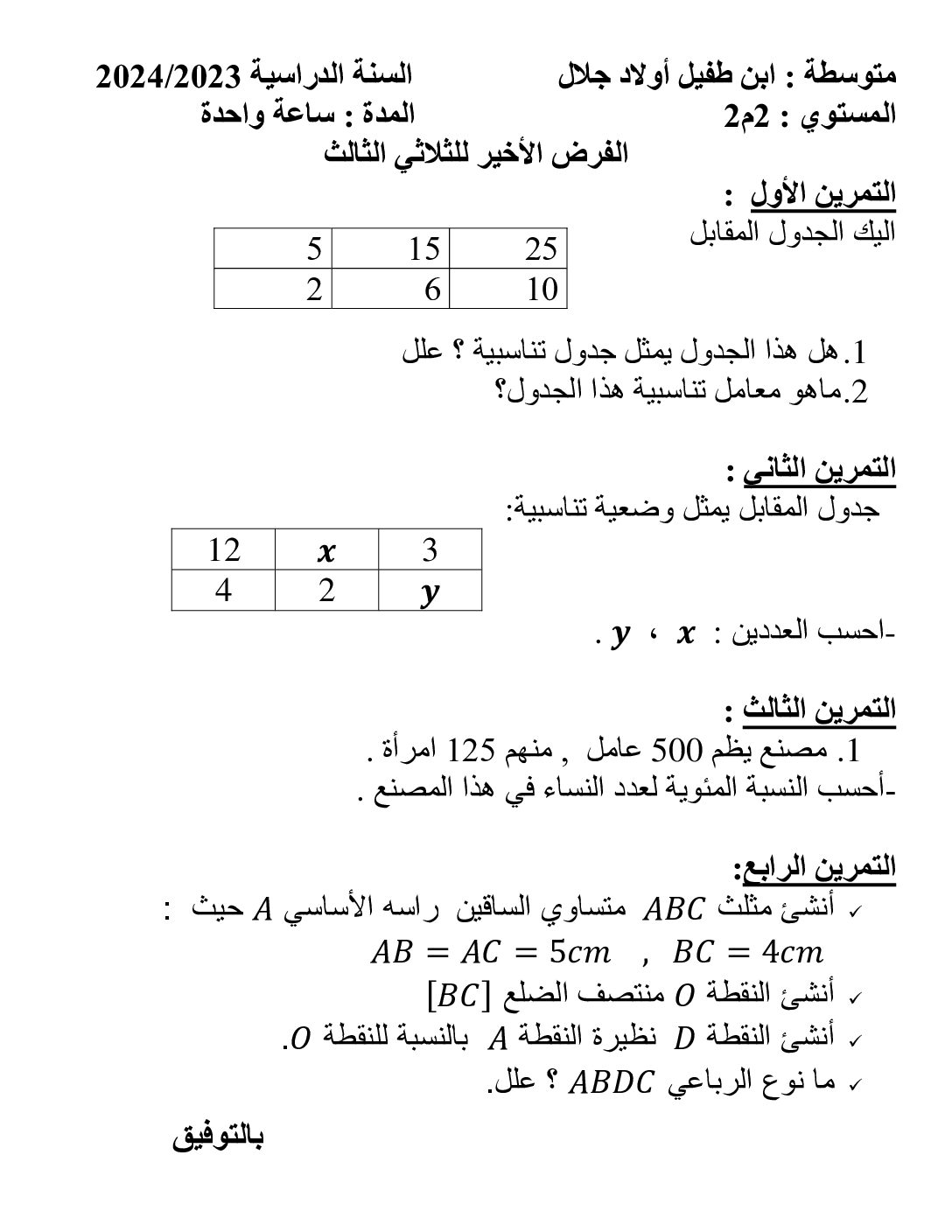 أكمل القراءة »فرض في الرياضيات الفصل الثالث السنة الثانية متوسط رقم 10