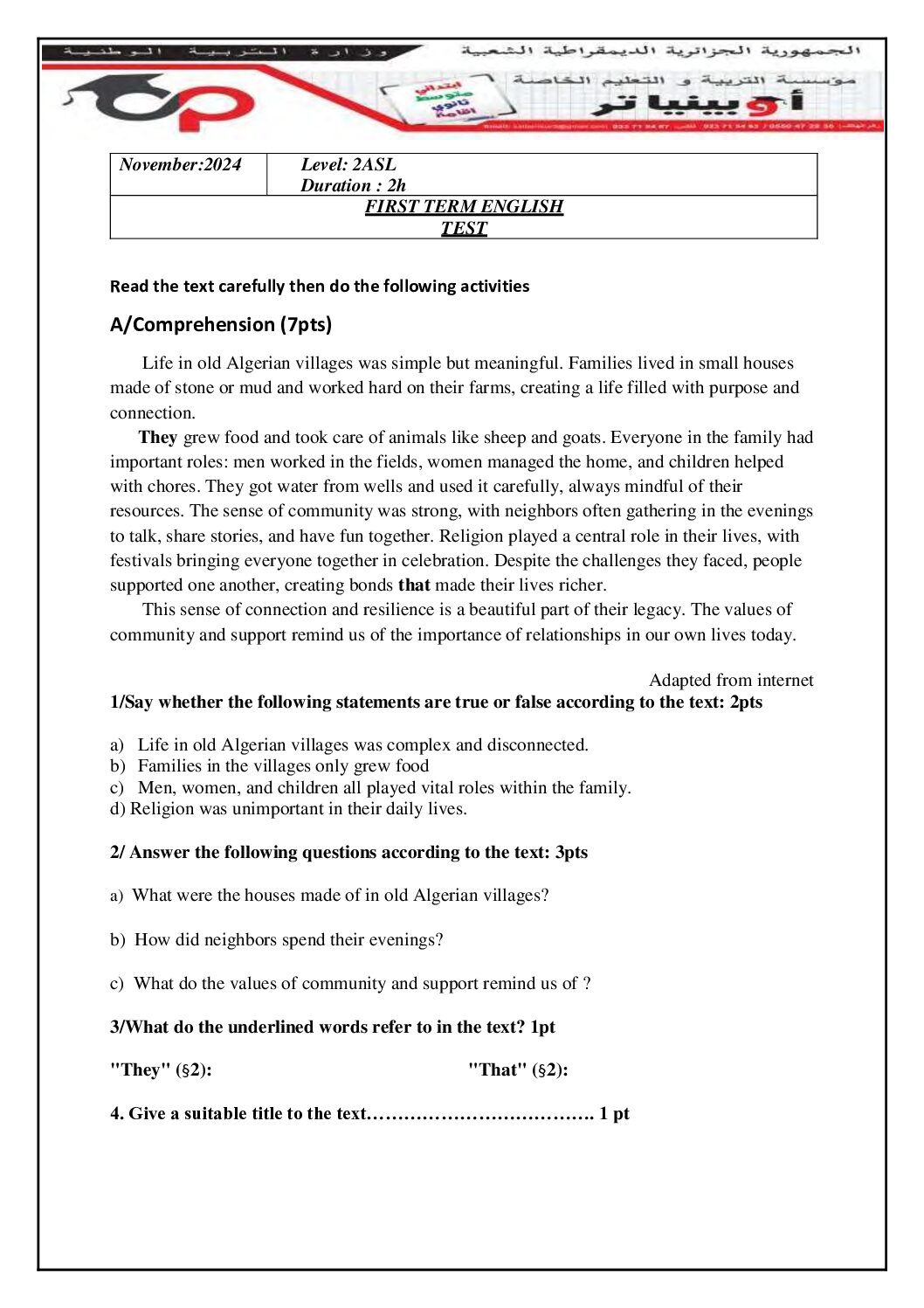 مادة اللغة الإنجليزية للسنة الثانية 2 ثانوي دروس مفصلة، فروض واختبارات، تمارين محلولة: نموذج لإمتحان في الفصل الأول رقم 19- في مادة اللغة الإنجليزية مستوى السنة الثانية ثانوي شعب أدبية، السنة الدراسية: 2024/2025 مع التصحيح يمكن تصفح الإختبار مباشرة عبر موقع الدراسة الجزائري أو تحميله مباشرة بصيغة PDF بالضغط أعلاه …