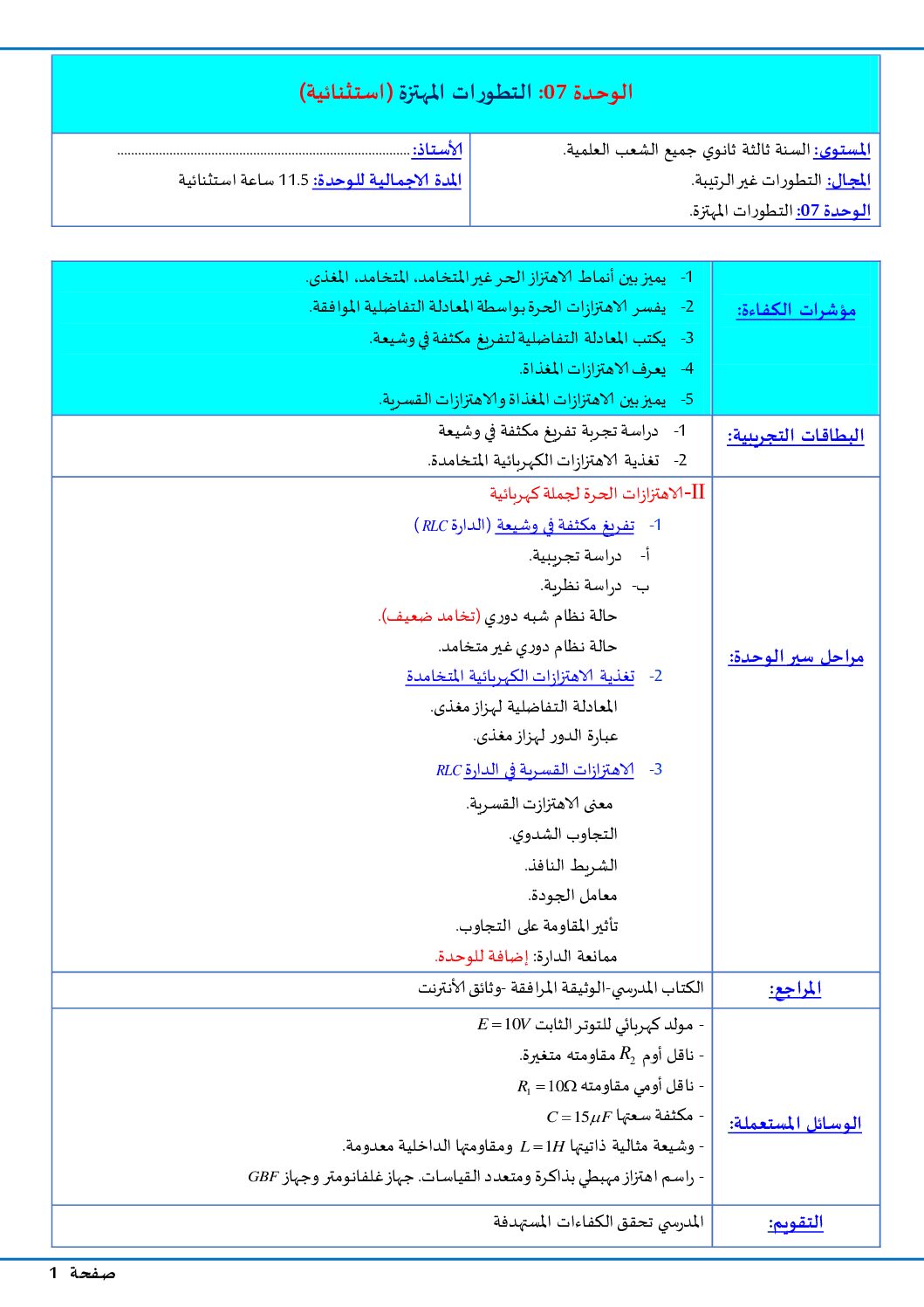 مذكرات الوحدة 07 التطورات المهتزة الكهربائية في الفيزياء للاستاذ ملكي علي 3 ثانوي التوزيع السنوي لمادة العلوم الفيزيائية شعبة علوم تجريبية 2023 3 ثانوي سلسلة ظواهر الانتشار في الفيزياء للأستاذ فارس فرقاني 3 ثانوي مادة العلوم الفيزيائية السنة الثالثة ثانوي : 100 سؤال وجواب نظري في الفيزياء لتحضير البكالوريا إعداد الأستاذ شريفي شعب علوم تجريبية ، رياضيات ، تقني رياضي: …