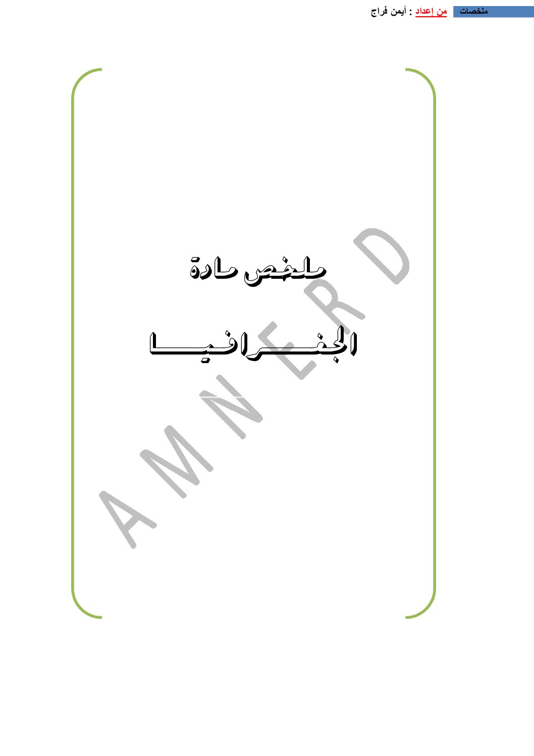 ملخصات دروس الجغرافيا من إعداد الأستاذ أمن فراج 3 ثانوي