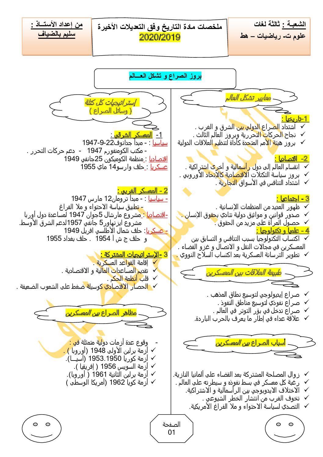 ملخصات دروس التاريخ و الجغرافيا للشعب العلمية للأستاذ سليم بالضياف 3 ثانوي