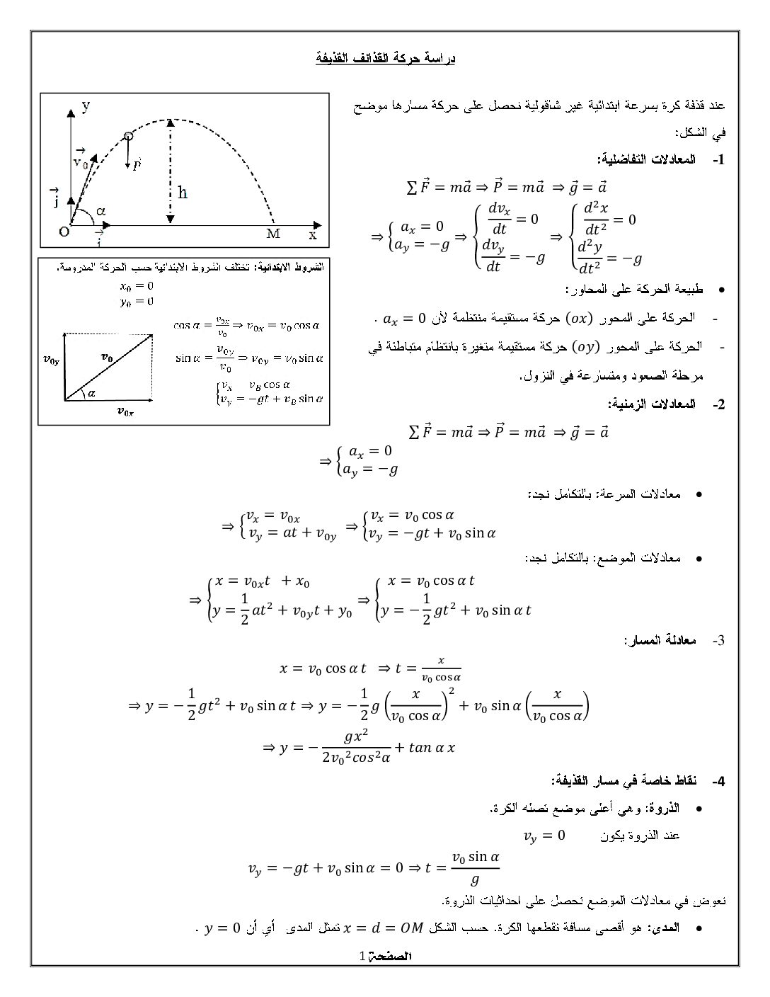 ملخص درس القذيفة إعداد الأستاذ نور الدين قيطة 3 ثانوي