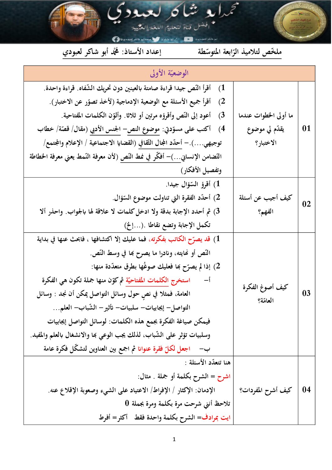 أكمل القراءة »ملخص شامل للمراجعة في اللغة العربية للأستاذ محمد أبو شاكر لعبودي 4 متوسط