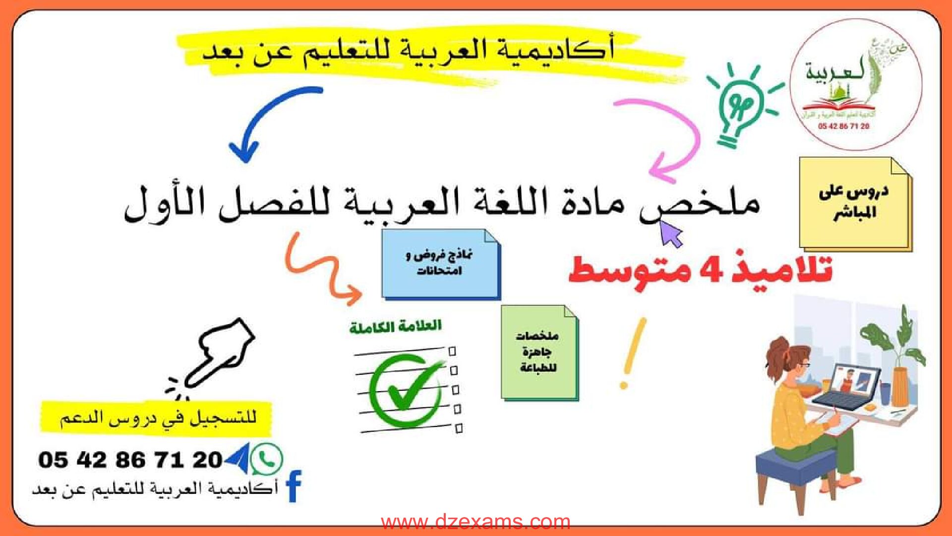 ملخص الفصل الأول في اللغة العربية للاستاذة ريما 4 متوسط
