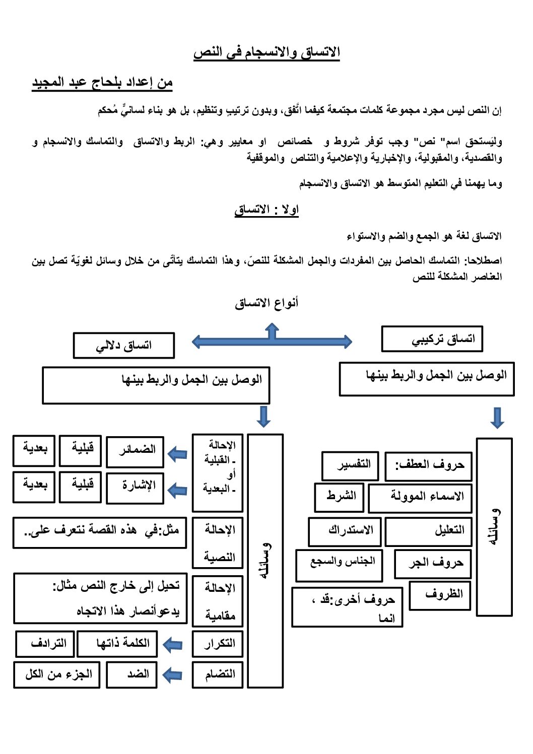 ملخص درس الاتساق و الانسجام في النص 4 متوسط