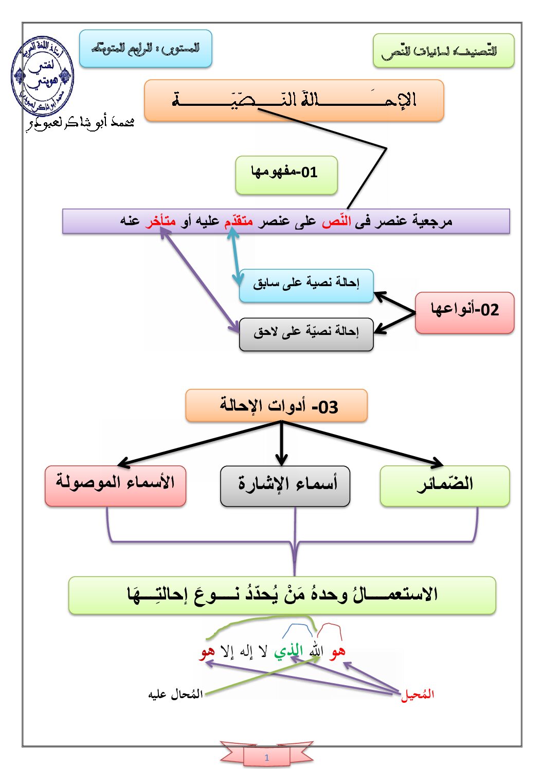 ملخص درس الاحالة النصية في مادة اللغة العربية للاستاذ محمد ابو شاكر لعبودي 4 متوسط