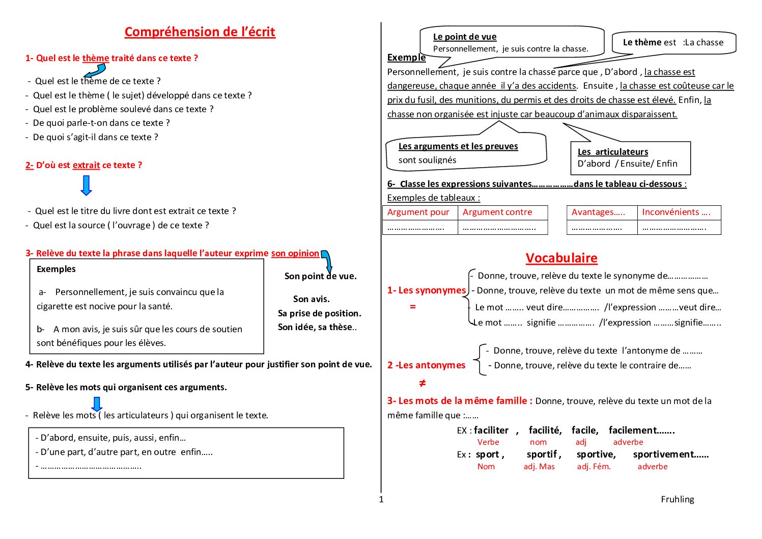 مراجعة دروس اللغة الفرنسية للتحضير لشهادة التعليم المتوسط 4 متوسط