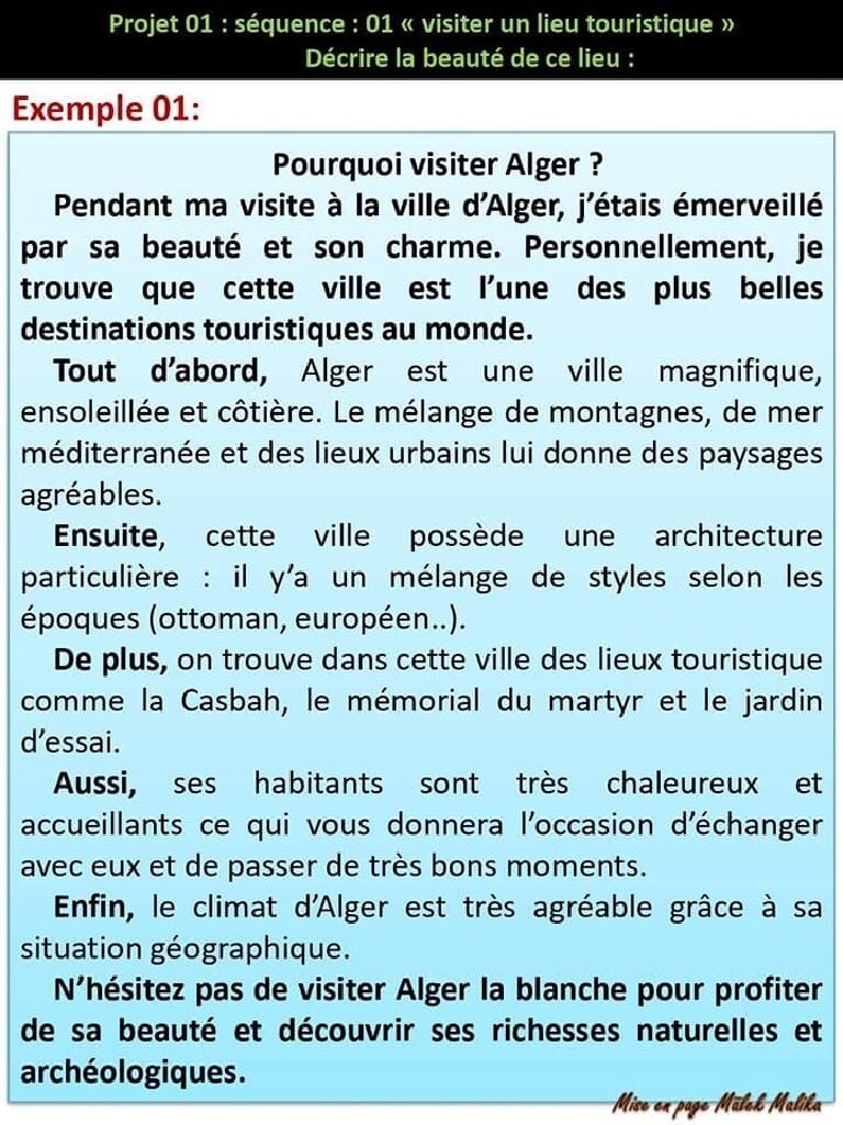 تعابير كتابية في مادة اللغة الفرنسية 4 متوسط Productions crites sur les projet 1 et 2