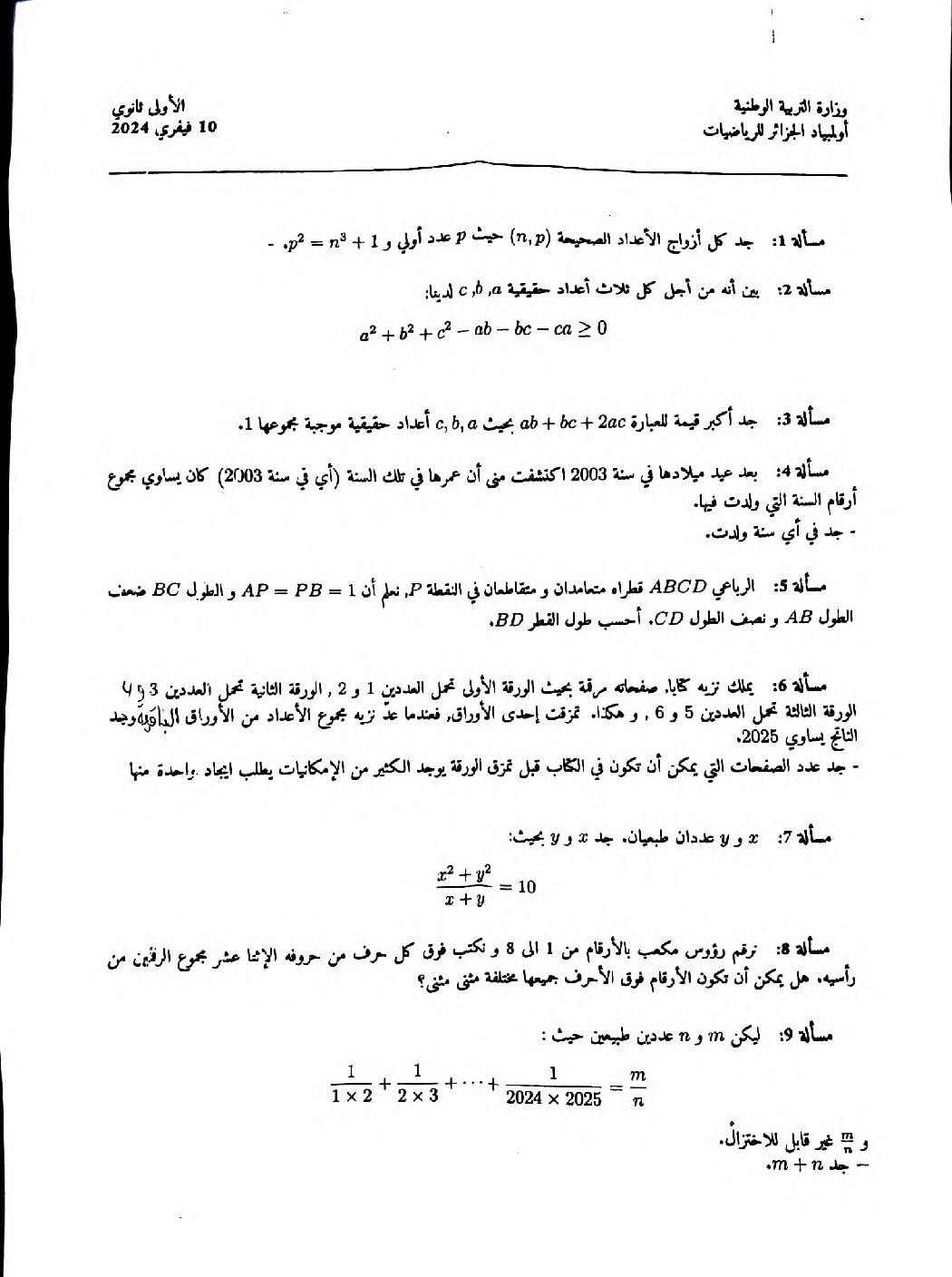 موضوع التحضير للأولمبياد العالمية للرياضيات التعليم المتوسط موضوع 2023 تمارين وحلول لرفع التحدي وتحضير أولمبياد الرياضيات الموضوع رقم 01 يمكن تصفح الملف مباشرة عبر موقع الدراسة الجزائري أو تحميله بصيغة PDF بالضغط أعلاه على : تحميل الرياضيات السنة الثالثة ثانوي
