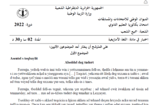 موضوع امتحان بكالوريا دورة جوان 2022 BAC : شعبة: علوم تجريبية، رياضيات، تقني رياضي، تسيير واقتصاد، آداب وفلسفة، آداب ولغات اجنبية، موضوع اختبار مادة اللغة الأمازيغية لبكالوريا 2022: وفيما يلي موضوع البكالوريا : يمكن تصفح الموضوع مباشرة عبر موقع الدراسة الجزائري أو تحميله مباشرة بصيغة PDF بالضغط أعلاه على: .: تحميل :.